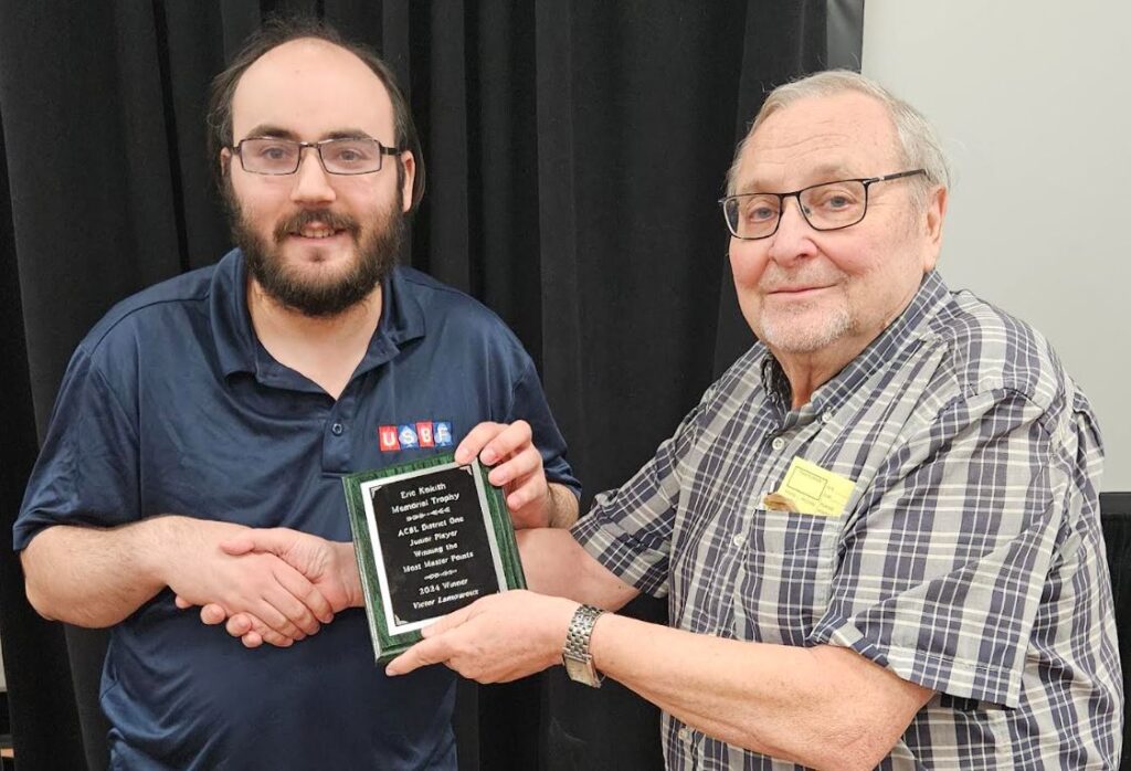 In 2023, ACBL District 1 decided to honor Eric’s memory by recognizing his contribution to the younger players, some of whom have gone on to become Canadian and international stars. A trophy will be awarded annually to a young player (25 and under) in the district, based on performance-related criteria.